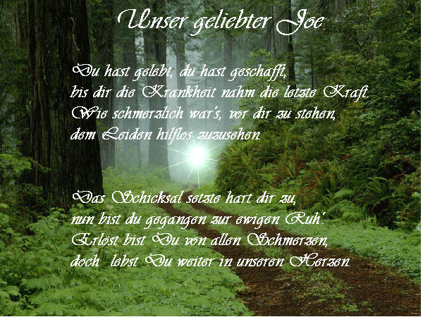 Du warst das beste, was uns im Leben begegnen konnte,  lieber König Joe! Wir vermissen Dich ganz schrecklich!
